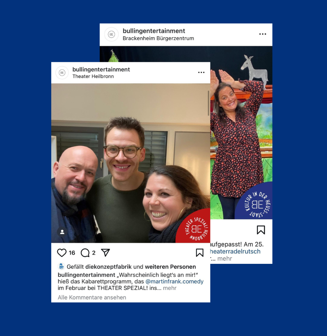 Zudem unterstützt die Konzeptfabrik die Bulling Entertainment im Social Media-Bereich auf den Plattformen Instagram und Facebook, einschließlich der grafischen Gestaltung und Logoentwicklung.